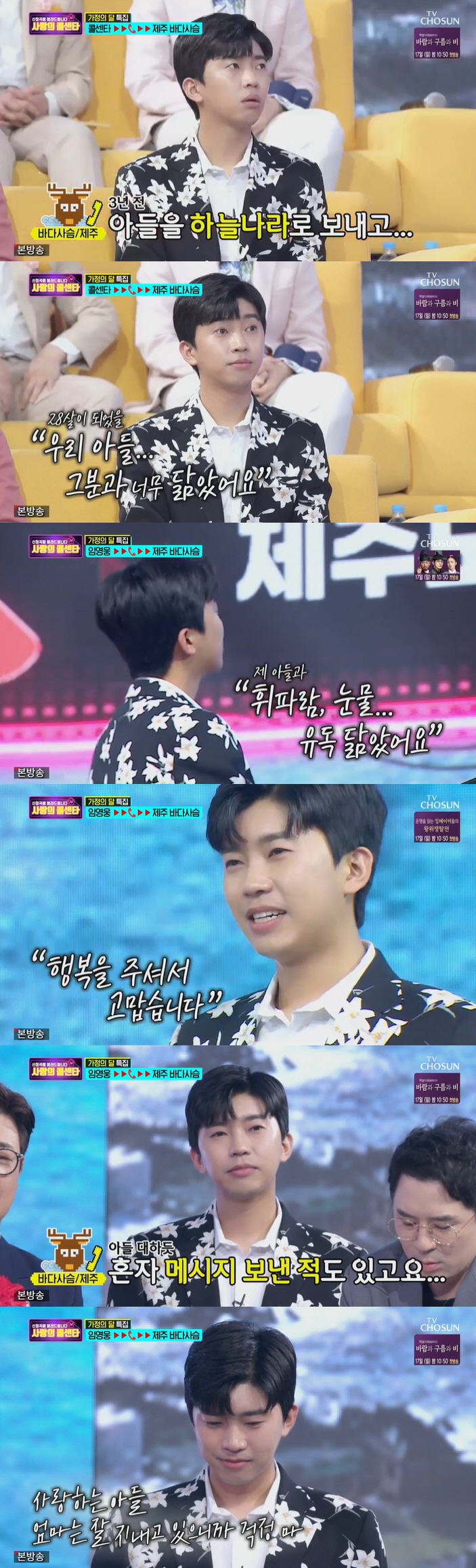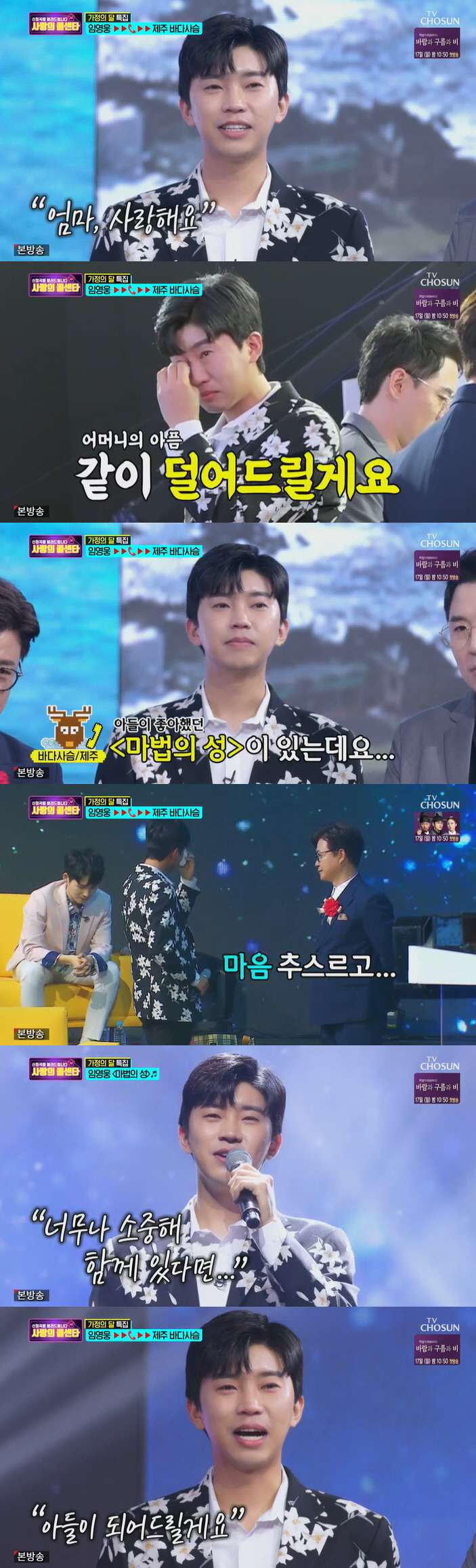 [스포츠조선 조윤선 기자] '사랑의 콜센타' 임영웅이 아들을 먼저 떠나보낸 팬의 안타까운 사연에 눈물을 쏟았다.