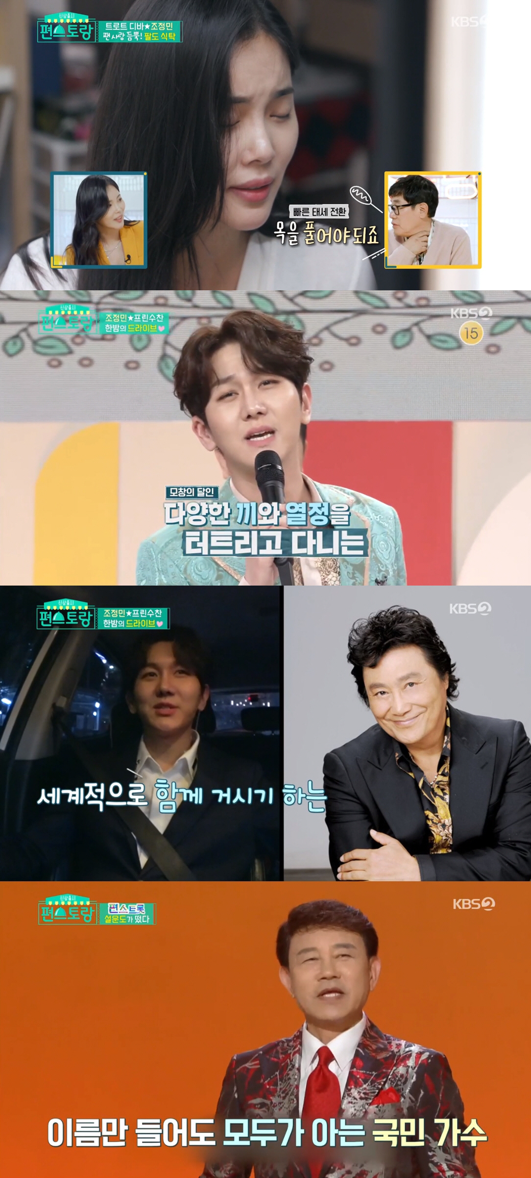 늦은 밤 조정민의 차를 향해 가는 한 남자. 그의 정체는 다양한 끼와 열정이 돋보이는 트로트 끼쟁이 김수찬이었다. 김수찬은 "오랜만이다"라며 조정민을 반겼다. 수준급 성대모사를 자랑하는 김수찬은 조정민의 음식을 맛본 남진, 진성, 예상 심사평을 즉석에서 선보였다. 17세에 '전국노래자랑'으로 활동을 시작한 김수찬은 벌써 데뷔 7년 차. 이에 조정민이 "나는 6년 정도 됐다"고 하자 김수찬은 바로 팔을 올리며 거들먹거리는 장난을 쳤다.
