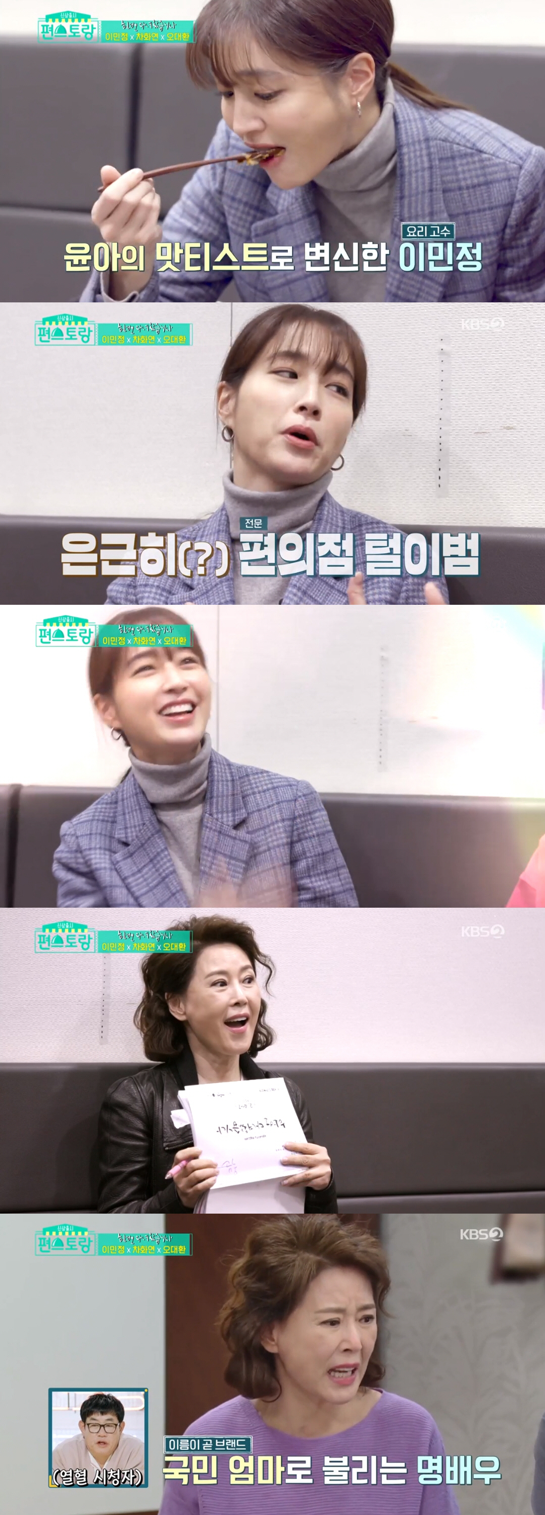 이민정은 "오빠가 너무 좋아하겠다"라며 이병헌도 좋아할 것이라 말했다. 평소 편의점 음식을 좋아한다는 이민정은 "평소에 라면을 너무 좋아한다"라고 말했다. 이정현은 "여행을 가면 이민정은 캔 참치, 컵라면, 술을 챙겨온다. 담당이다"라고 절친으로서 증언했다.