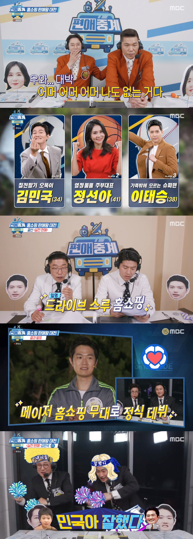 [스포츠조선닷컴 김준석 기자] MBC '편애중계' 안정환, 김성주가 '일일 아들' 예비 쇼호스트 김민국의 홈쇼핑 데뷔 약속과 함께 감격의 4승을 이뤄냈다.