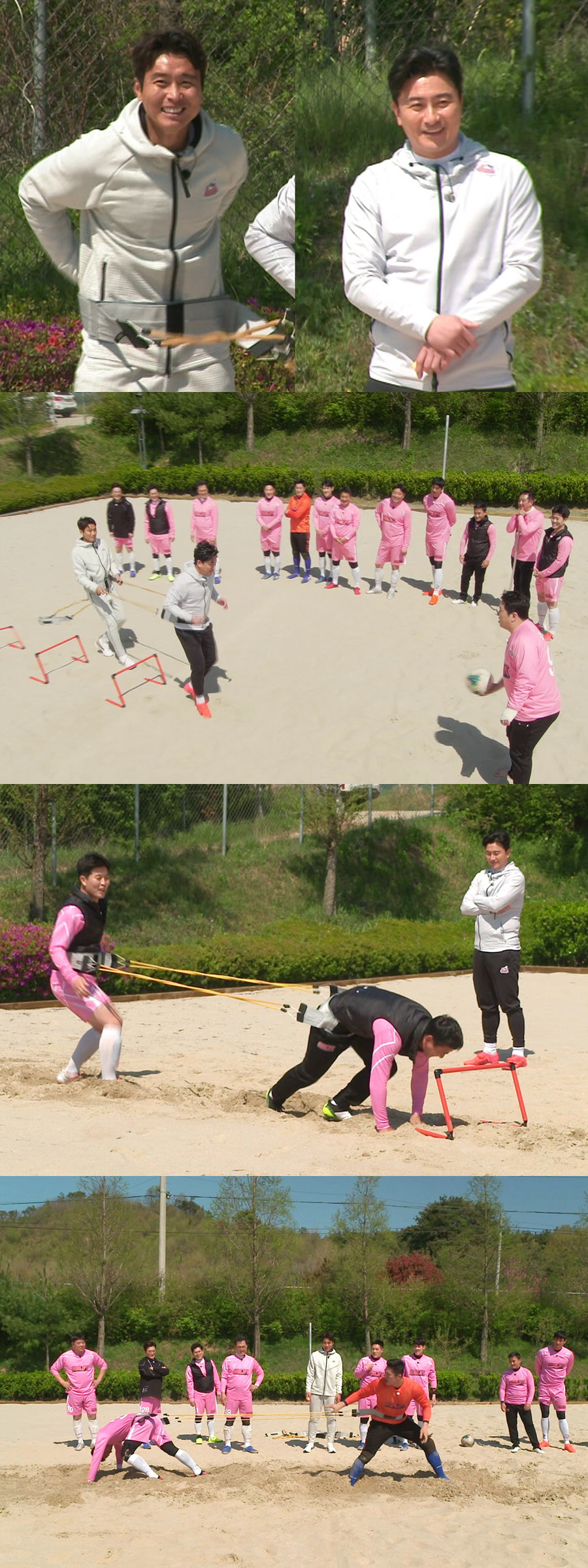 이날 '어쩌다FC'는 이동국이 준비한 2인 1조 샌드박스 훈련을 앞두고 표정이 어두워진다. 샌드박스 위에서 뒤에서 버티는 사람과 앞으로 나아가야하는 사람이 한 고무 밴드에 묶여 허들을 뛰어넘고 슛까지 이어가야하는 저항력 극대화 고강도 훈련이 기다리고 있었던 것.
