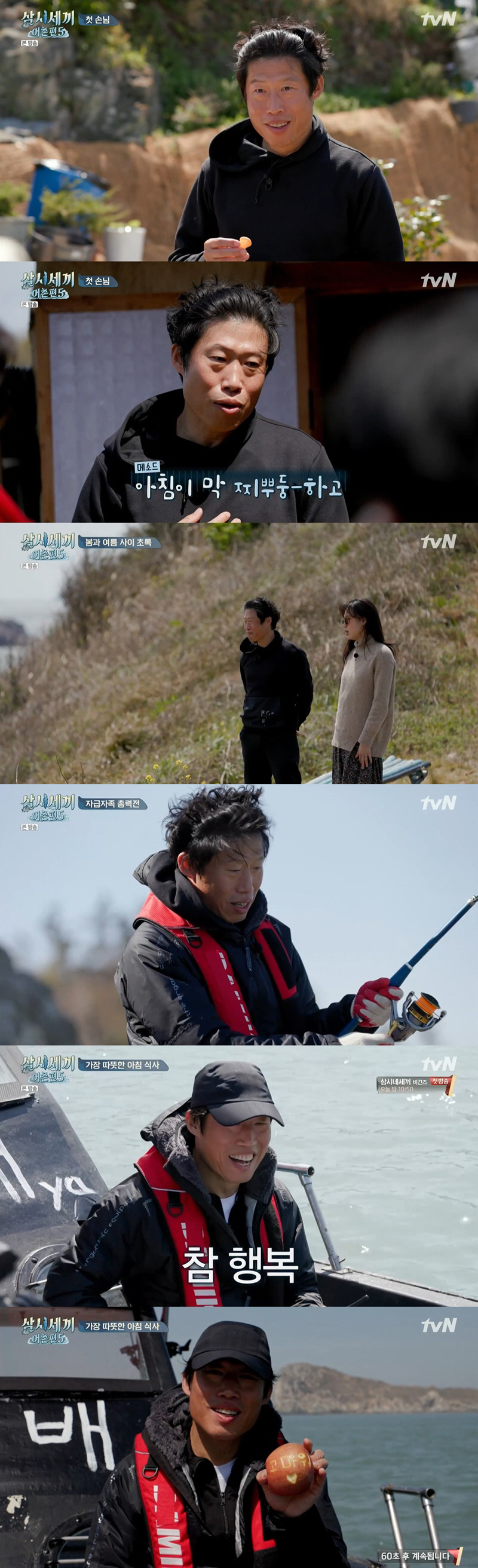 다음날 아침, 유해진은 식재료를 구하기 위해 홀로 선상 낚시에 나서며 굳은 의지를 보였고 식사까지 미루며 바다에서 고군분투했다. 이를 안타깝게 여긴 차승원은 도시락을 선상으로 보내 식사를 거르지 않게 배려했다. 이런 배려에 유해진은 감동받은 마음을 사과에 새겨 메시지로 보내 스윗한 매력을 보여줬다.