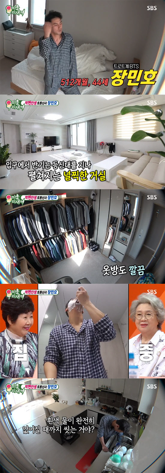 17일 방송된 SBS '미운우리새끼'에서는 생후 512개월 44살, 장민호의 일상이 그려졌다. '미스터트롯' 이후 최고의 인기를 구가하고 있는 장민호. 트로트계의 BTS라고 불리는 그가 등장하자 모벤져스 역시 흥분을 감추지 모했다.
