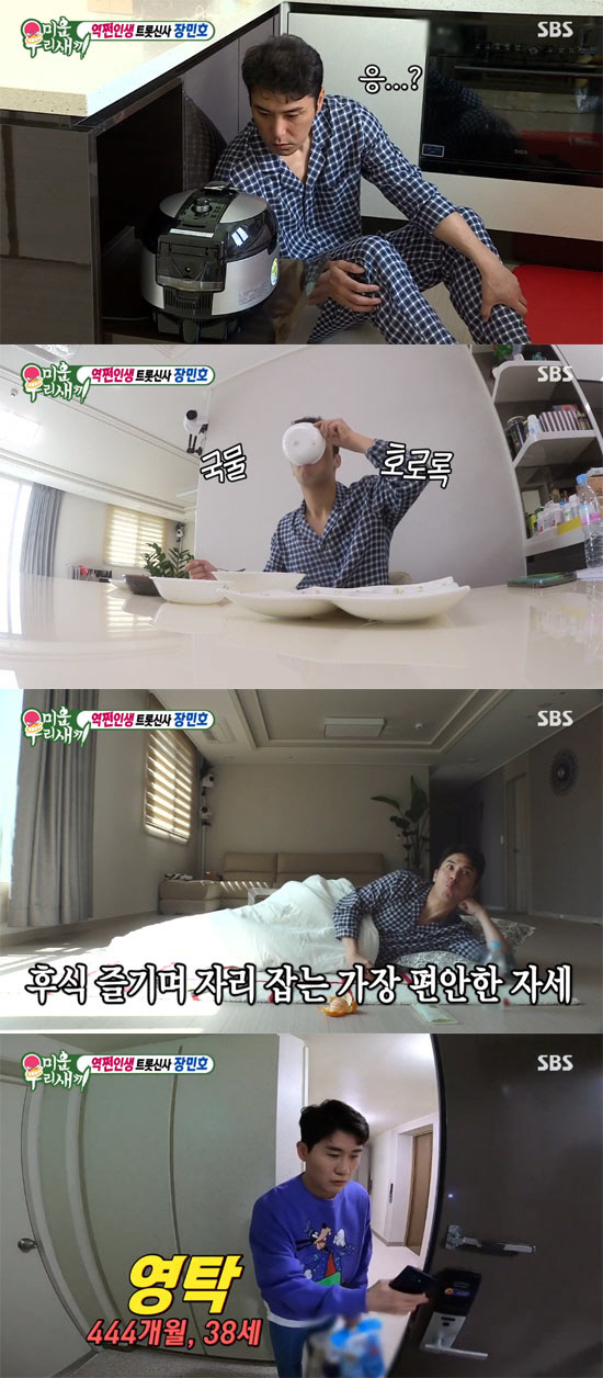 영탁은 장민호의 집을 둘러 보며 "민호형 집 좋다, 성공했네 우리형"이라며 "내 로망이 아파트, 난 지하사는데 언제 아파트로 올라오나"라며 부러워했다.