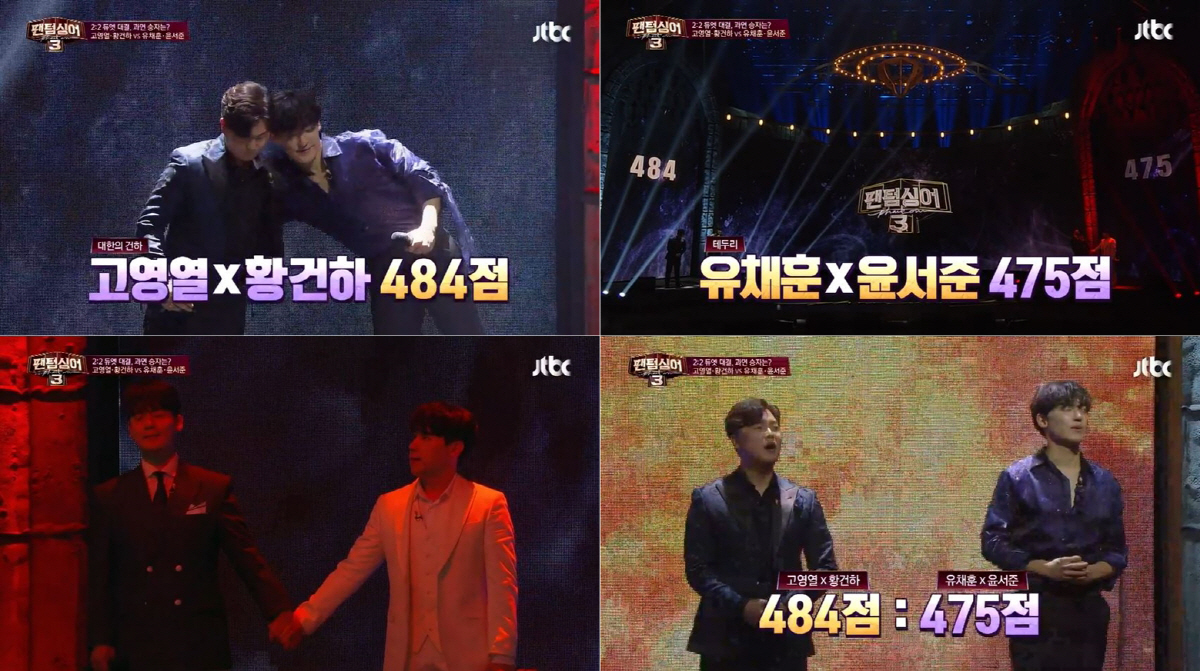 [스포츠조선닷컴 이지현 기자] '팬텀싱어3'에서 최고의 듀엣 대결을 펼칠 고영열 황건하 팀과 유채훈 윤서준 팀의 승자 발표가 최고의 1분을 기록했다.