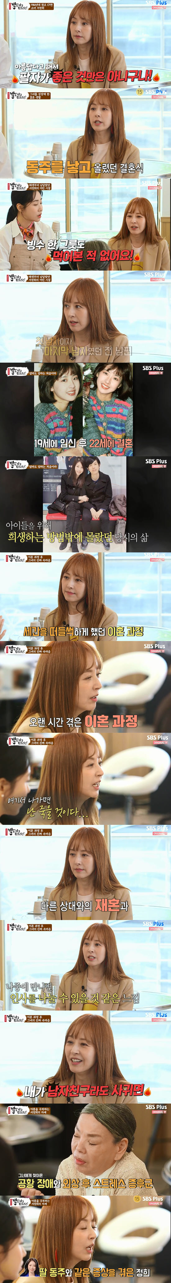 그녀는 "결혼할 때 처음에는 바람피워도 좋다고 생각했다. 이 가정을 지킬수만 있다면..준비되어진 마음가짐은 있었다"며 "이혼까지 가고 나서 막상 가정이 깨어짐을 겪을 때 내가 쌓아놓은 성이 무너졌을 때, 모범이 되고 싶었던 모든 것이 망가졌을 때 그게 힘들었다"고 말했다.