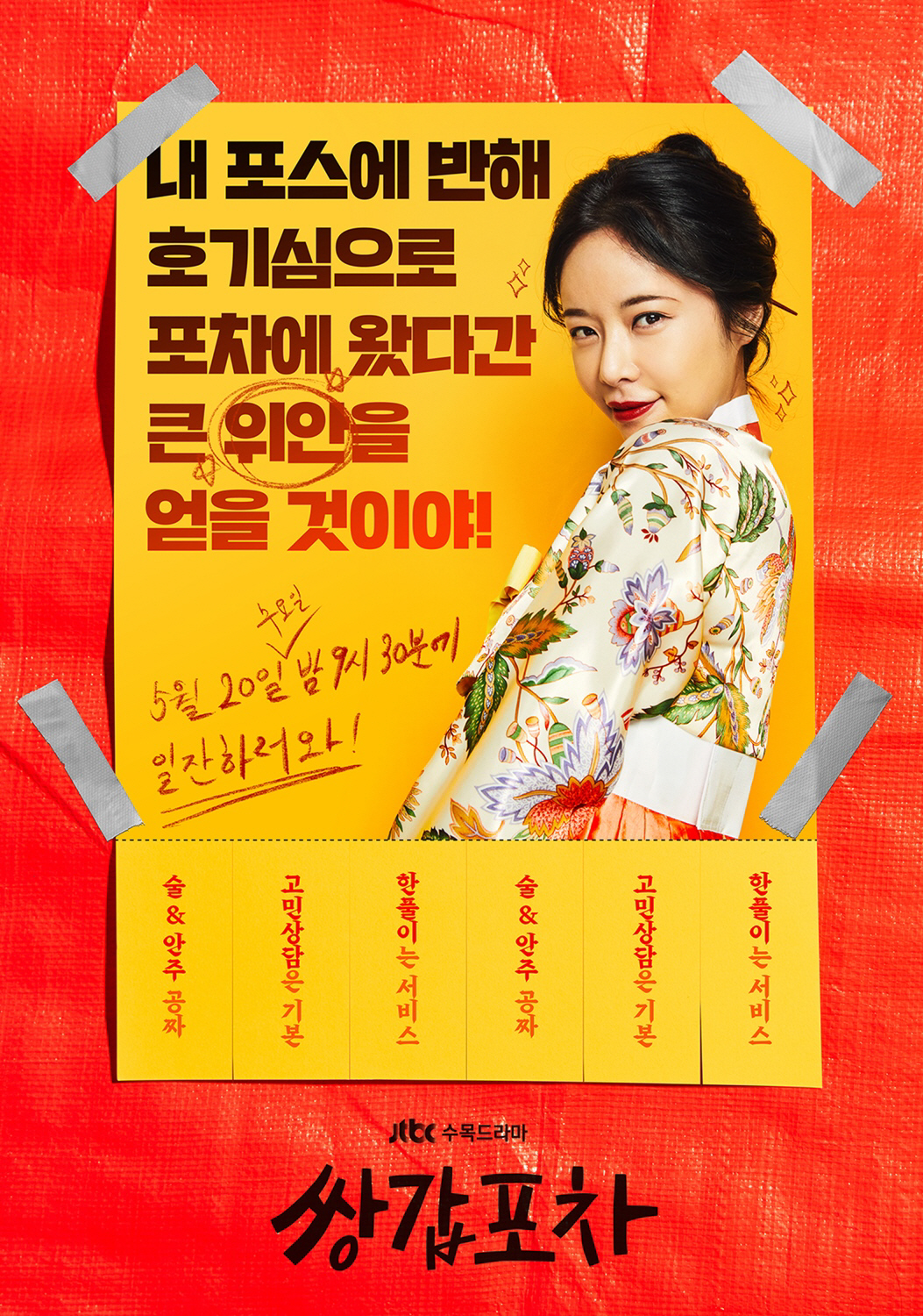 '부부의 세계'로 'SKY캐슬'에 이어 다시 한번 저력을 과시한 JTBC는 새 수목극 '쌍갑포차'로 그 여세를 몰아갈 작정이다. 황정음을 원톱 주연으로 포진시킨 '쌍갑포차'는 신비한 포장마차의 까칠한 이모님과 순수청년 알바생이 손님들의 꿈속에 들어가 맺힌 한을 풀어주는 판타지 카운슬링 드라마를 표방하고 있다. 배혜수 작가의 동명 웹툰을 원작으로 해 '직장의 신' '가족끼리 왜 이래' '더패키지'의 전창근 감독이 지친 사람들의 마음을 달래주는 통쾌하고도 섬세한 터치로 드라마를 완성할 예정이다.