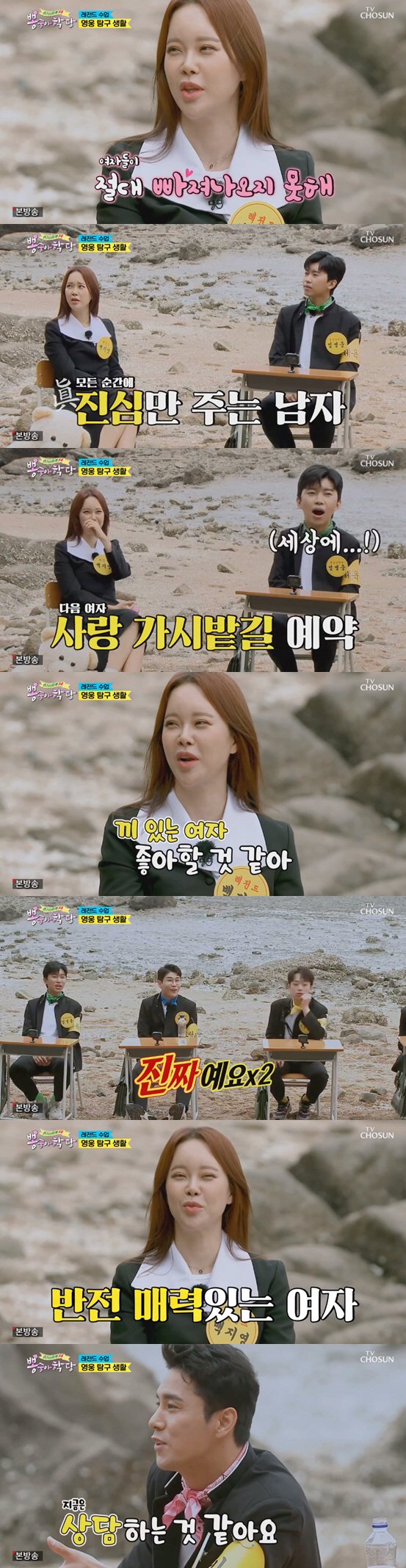 또한 "임영웅 씨는 생각보다 끼 있는 여자 좋아할 것 같다. 처음에는 순하고 참한 여자 좋아할 거라고 생각했는데, 노래부르는 거 보니까 반전 매력 있는 사람 좋아할 것 같다"고 말했다. 이를 듣던 장민호는 "백지영 씨 분석이 정말 맞다. 의사 선생님과 상담하는 것 같다"며 감탄했다.
