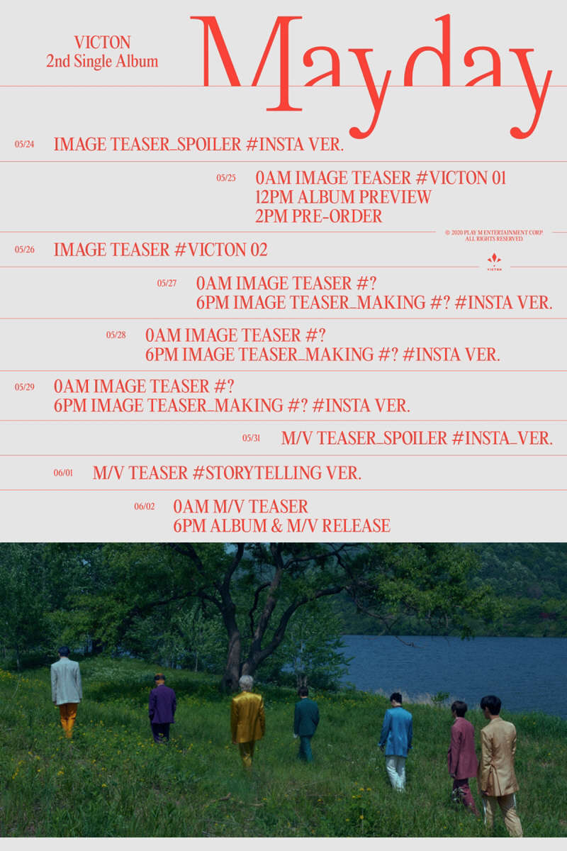 '메이데이'는 특유의 아련한 감성으로 팬들의 사랑을 받았던 첫 싱글 '오월애' 이후 빅톤이 2년 만에 선보이는 싱글앨범다. '그리운밤' '하울링'으로 이어지는 빅톤만의 감성 퍼포먼스를 기대하게 한다.