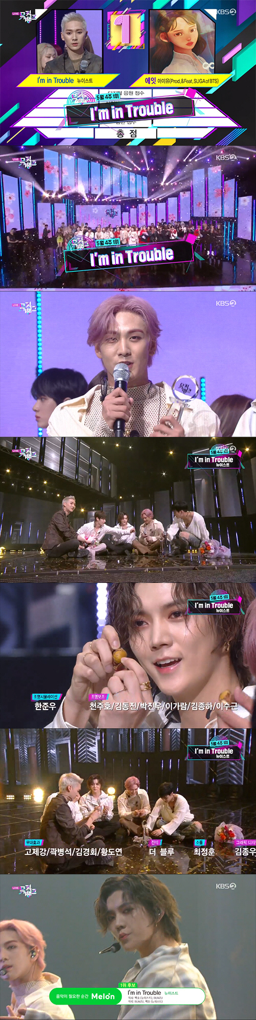 5월 22일 방송된 KBS 2TV '뮤직뱅크'에서는 뉴이스트의 신곡 'I'm in trouble'과 아이유의 신곡 '에잇(prod.방탄소년단 슈가)'이 5월 넷째 주 1위 후보로 맞붙었다. 결국 뉴이스트가 아이유를 꺾고 1위를 차지했다.
