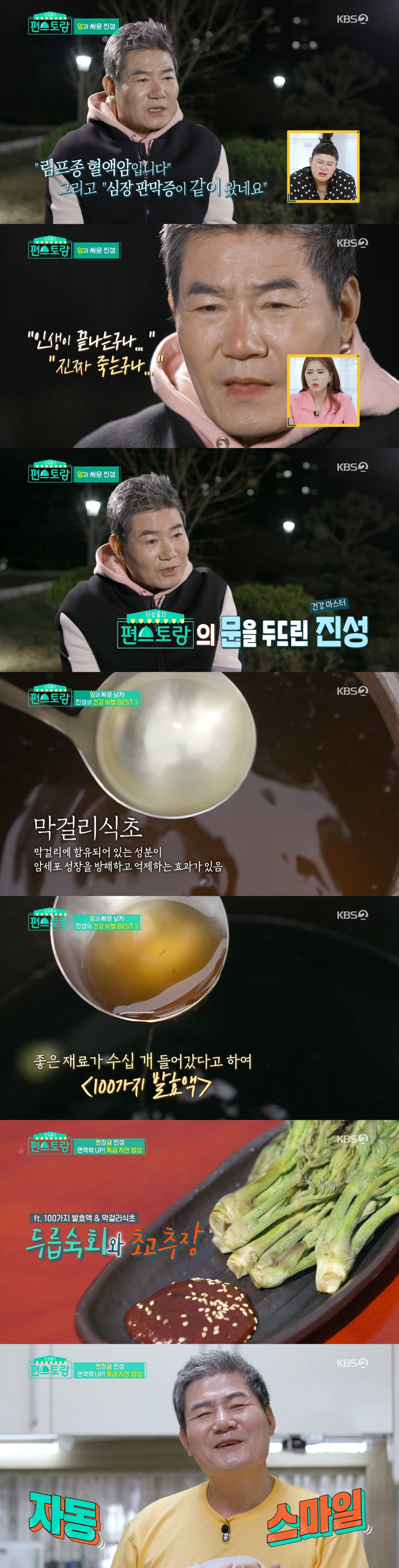 22일 방송된 KBS 2TV '신상출시 편스토랑'(이하 '편스토랑')에서는 10번째 메뉴대결 주제 '면역력 밥상'이 공개됐다. 이와 함께 주제에 걸맞게, 과거 투병 후 건강을 회복한 가수 진성이 깜짝 편셰프로 합류해 자신만의 다양한 항암 비법과 건강 밥상을 공개했다.