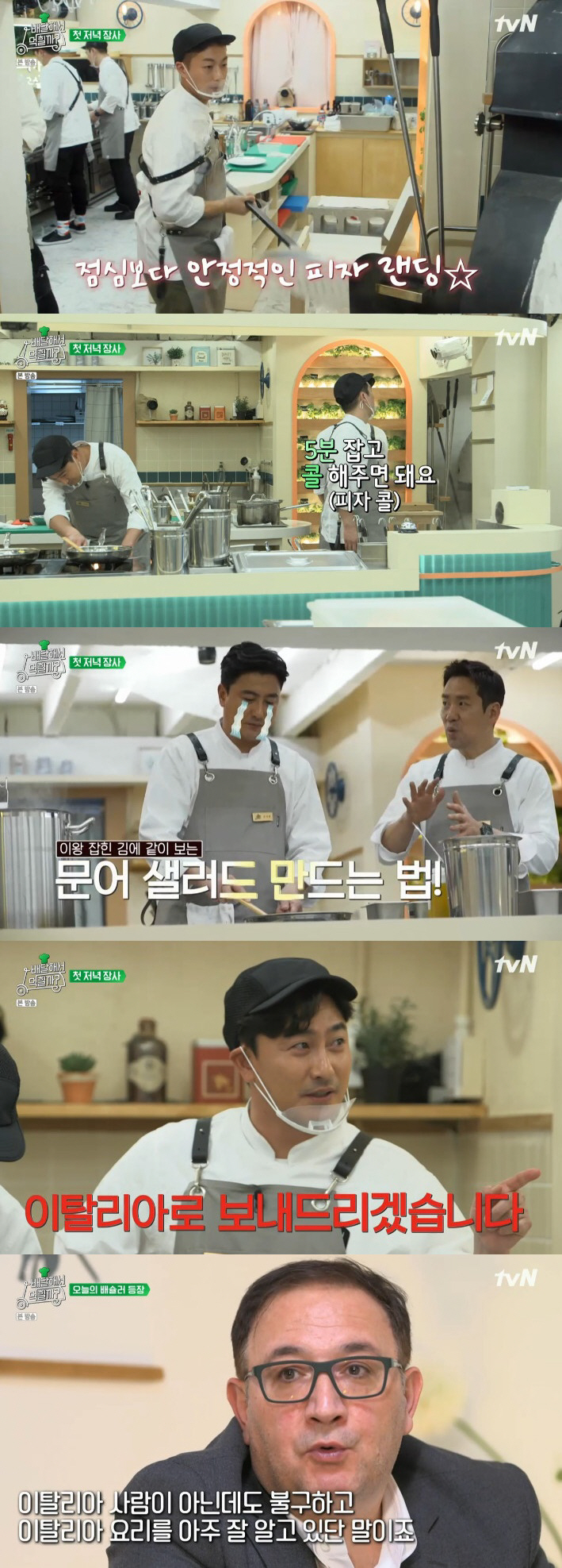 정세운 뿐 아니라 윤두준도 힘들어했다. 파스타가 완성되는 시간에 맞춰 식지 않게 피자를 완성해야하지만 그 타이밍을 맞추기가 어려운 것. 끊임 없는 주문으로 파스타 재료도 금세 바닥이 났지만 안정환이 미리 재료를 소분한 덕에 샘킴은 막힘 없이 요리를 이어갔다. 하지만 큰 문제가 발생한 듯 보였다. 윤두준은 피자를 화덕에 넣은 직후 "큰 일 났다"고 한숨을 내쉬어 궁금증을 자아냈다.