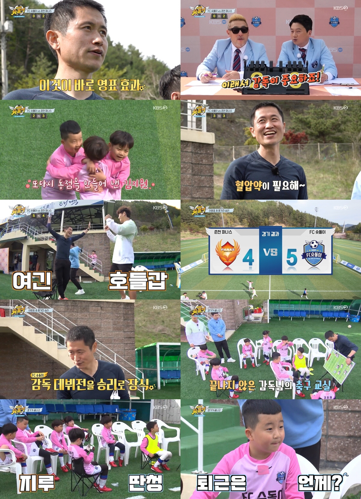 [스포츠조선닷컴 정유나 기자] '날아라 슛돌이' 이영표가 감독 데뷔전에서 역전승을 거뒀다.