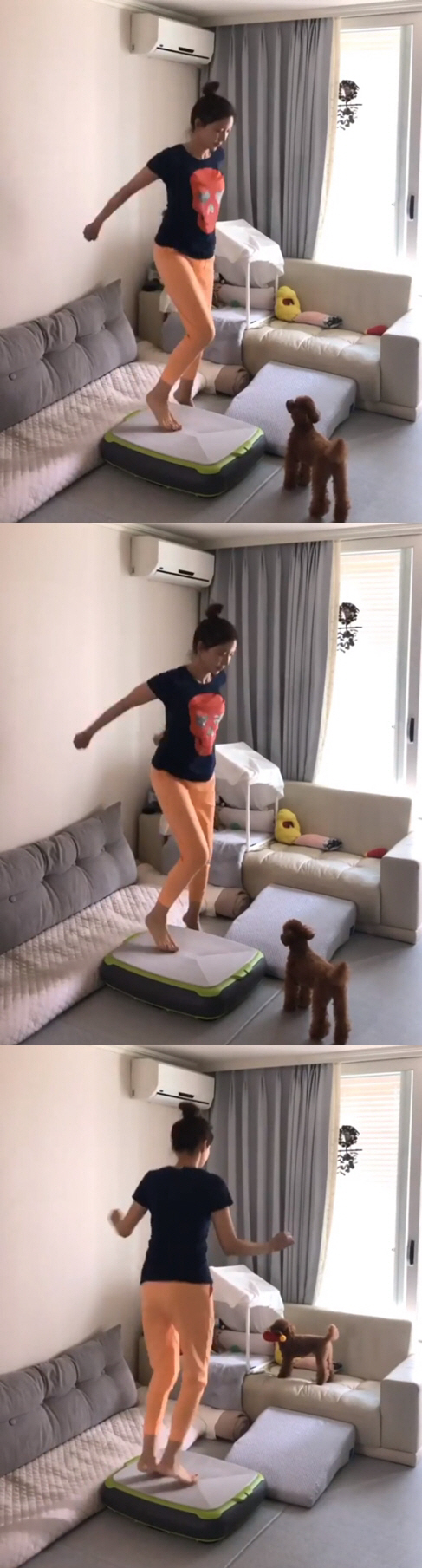 [스포츠조선닷컴 정유나 기자] 배우 윤세아가 집에서 운동 중인 모습을 공개했다.