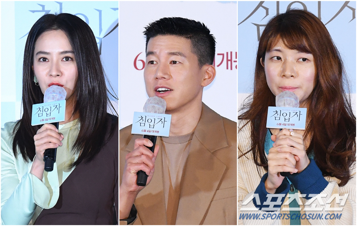 27일 서울 용산CGV에서 영화 '침입자' 언론시사회가 열렸다. 시사회를 마치고 기자간담회에 참석한 배우 김문열, 송지효, 손원평 감독. 용산=송정헌 기자 songs@sportschosun.com/2020.05.27/