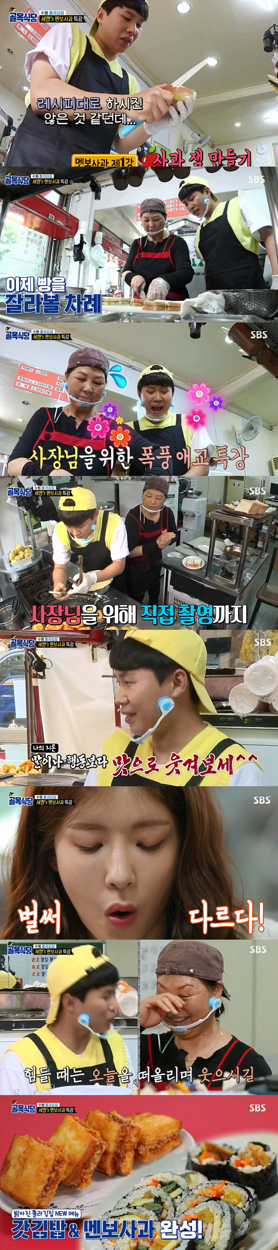 마지막 꿀팁은 연유. 연유를 곁들여 먹으면 진짜 엄청난 맛이 난다고 전한 양세형은 사장님의 입맛까지 매료시켰다. 지켜보던 정인선도 입맛을 다시다가 멘보사과를 맛보러 출동했다. 정인선은 "연유가 없으면 안될 것 같다"며 양세형의 야무진 솜씨를 칭찬한 뒤 "백종원 선생님과 비슷한다. 본인이 만든 걸 먹고 맛있다고 한다"고 지적했다. 이에 양세형은 "그거 원래 제가 원조인데 선생님이 날 따라한 것"이라고 너스레를 떨어 웃음을 유발했다.