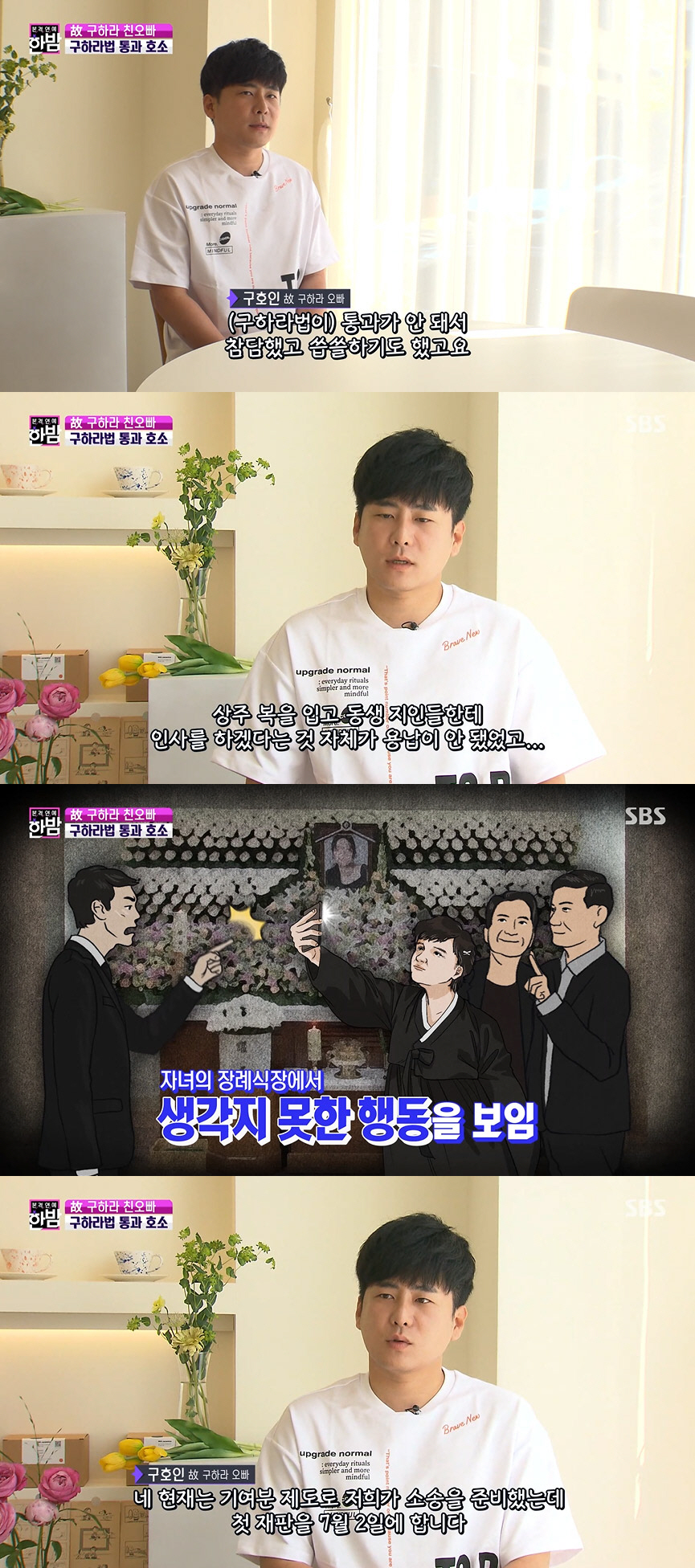 구호인 씨는 "꼭 이렇게 해야했나. 저나 동생이나 (엄마에 대한)기억이 가물가물하다. 동생은 9살, 저는 11살이었다. 하라한테 해준 것도 없는데 그렇게까지 요구할 줄은 상상도 못했다"고 말했다.