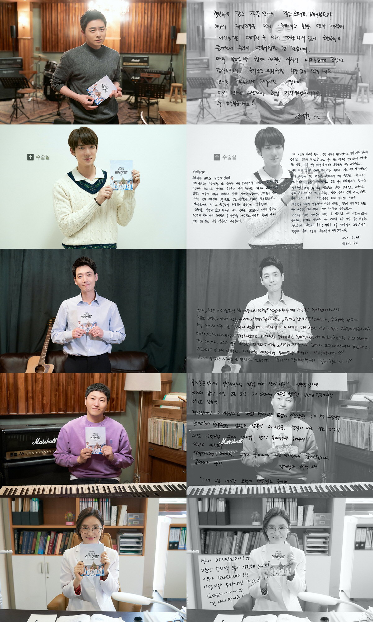 [스포츠조선 문지연 기자] 매회 시청자들을 웃고 울리며 공감과 위로를 전했던 tvN 2020 목요스페셜 '슬기로운 의사생활'(이우정 극본, 신원호 연출)이 28일 시즌 1 최종화를 앞두고 5인방이 자필로 직접 전한 종영 소감을 전했다.