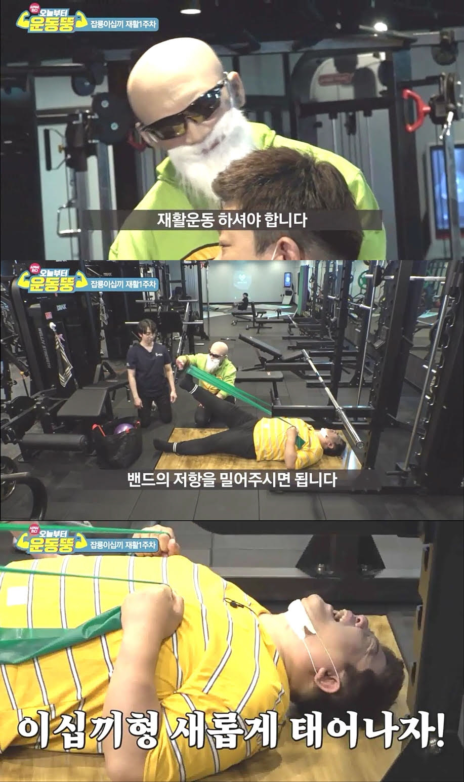 [스포츠조선닷컴 이우주 기자] 유민상이 김계란과의 재활운동 첫 회부터 영혼 털린 모습으로 웃음을 안겼다.