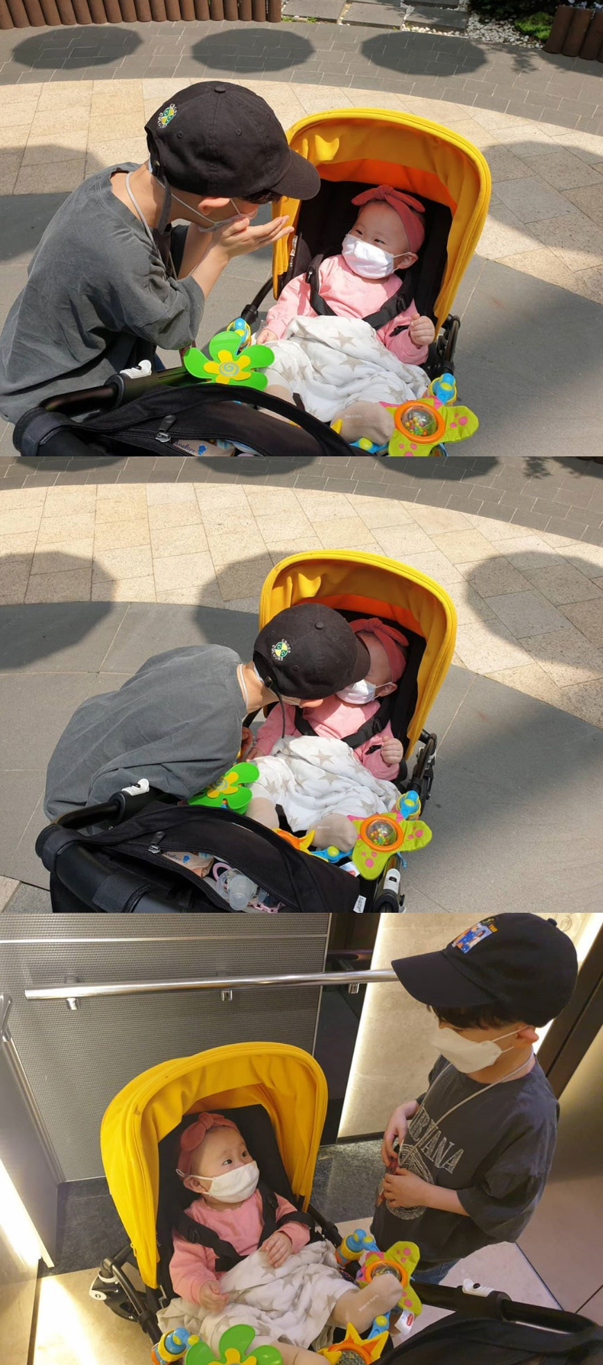 사진 속에는 막내 하송 양에게서 눈을 떼지 못하고 있는 첫째 하드림 군의 모습이 담겨있다. 오빠의 재롱에 환한 미소를 짓고 있는 송이 양. 엘리베이터에서도 송이 양의 시선이 향한 곳은 오빠 드림 군이었다. 이처럼 다정한 남매의 모습은 보는 이들까지 절로 미소를 짓게 했다.