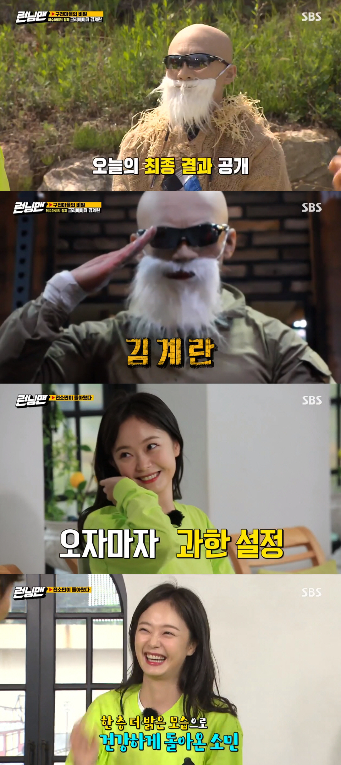 [스포츠조선닷컴 김수현기자] 전소민이 무사히 '런닝맨'에 복귀한 가운데 크리에이터 김계란이 허수아비의 정체로 밝혀졌다.