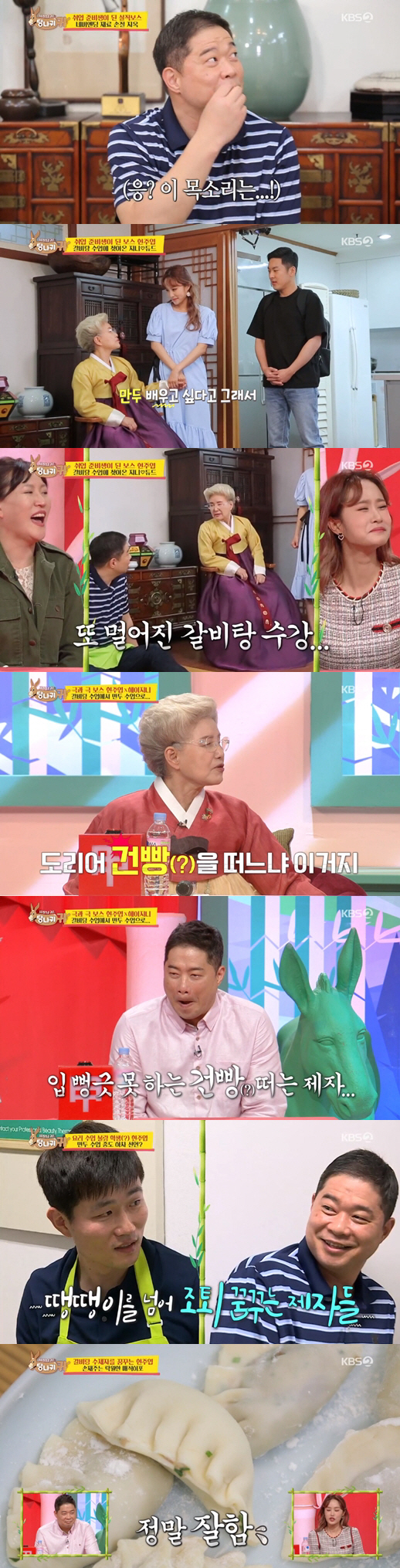 이런 가운데 이날 또 다른 보스 헤이지니, 듀드 부부가 예고도 없이 찾아오는 돌발 상황이 펼쳐져 현주엽을 당황시켰다. 지니는 "남편 듀드의 생일상으로 만두를 만들어주기 위해 배우러 왔다"고 말했다.