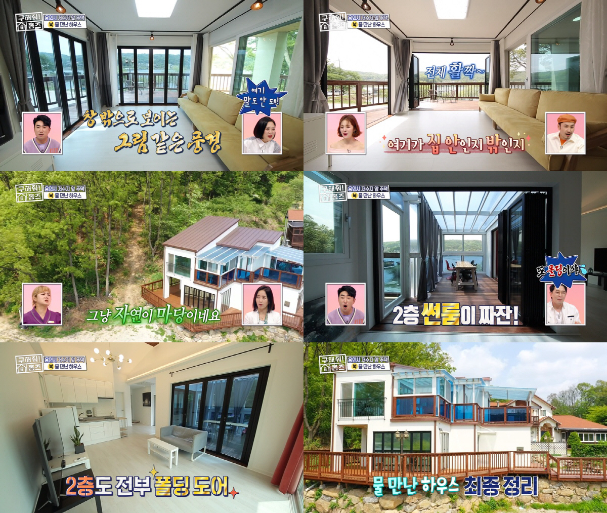마지막으로 복팀은 용인시 원삼면 두창리의 '물 만난 하우스'를 소개했다. 저수지 도보 30초 거리에 위치한 매물은 3면이 폴딩 도어로 개방감을 더했으며, 산과 저수지가 감싸고 있었다. 내 집에서 바라보는 저수지 뷰는 '최고의 뷰'로 손꼽힐 정도였으며, 집 안에 보이는 모든 가구와 가전이 옵션으로 알려져 눈길을 사로잡았다.