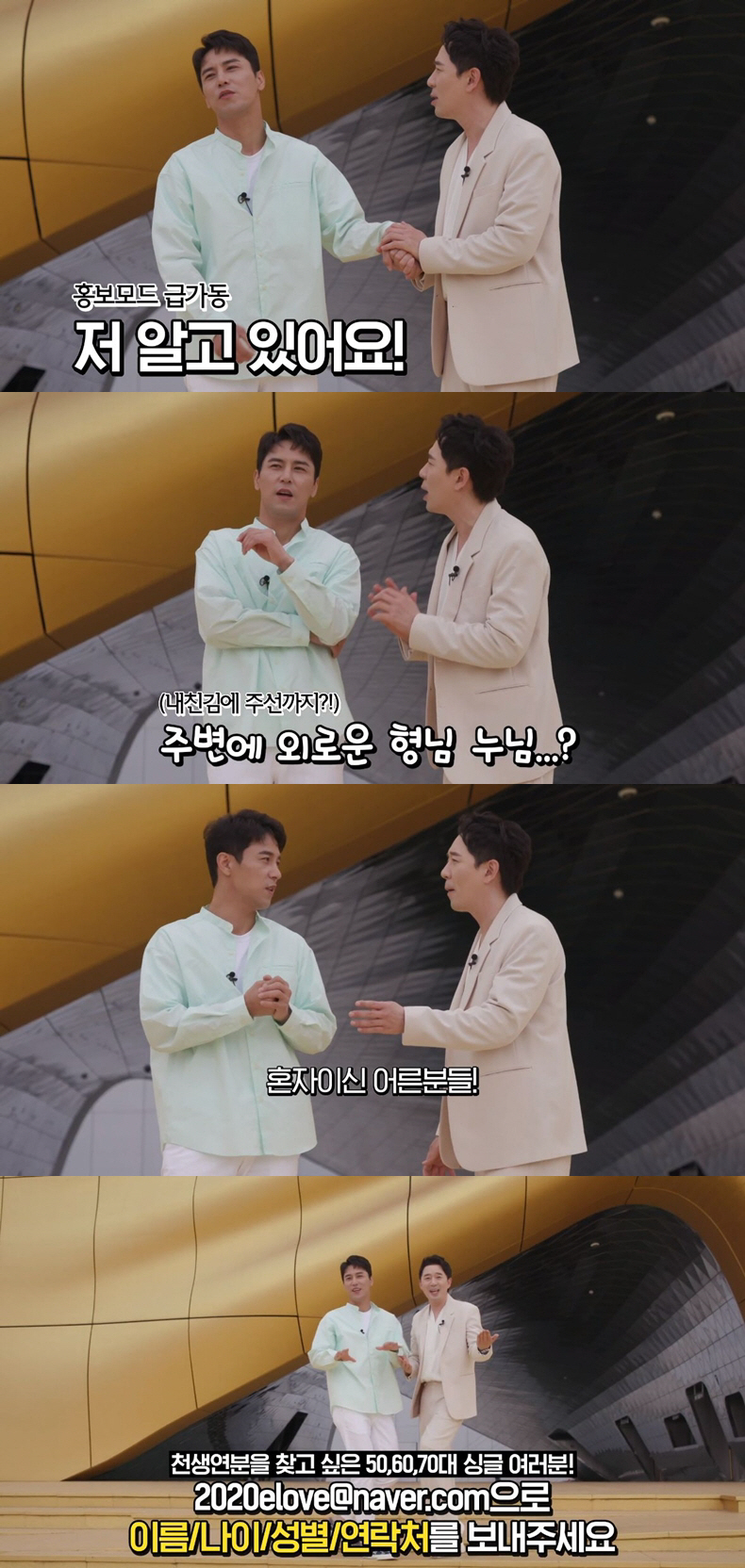 한편 장민호가 적극 홍보에 나선 '사랑의 재개발'은 신동엽, 장윤정, 붐이 MC로 확정돼 방송에 대한 기대를 높이고 있다. 전세대의 사랑을 받는 MC들까지 함께하며 세대 공감 프로그램의 시작을 알리고 있다.