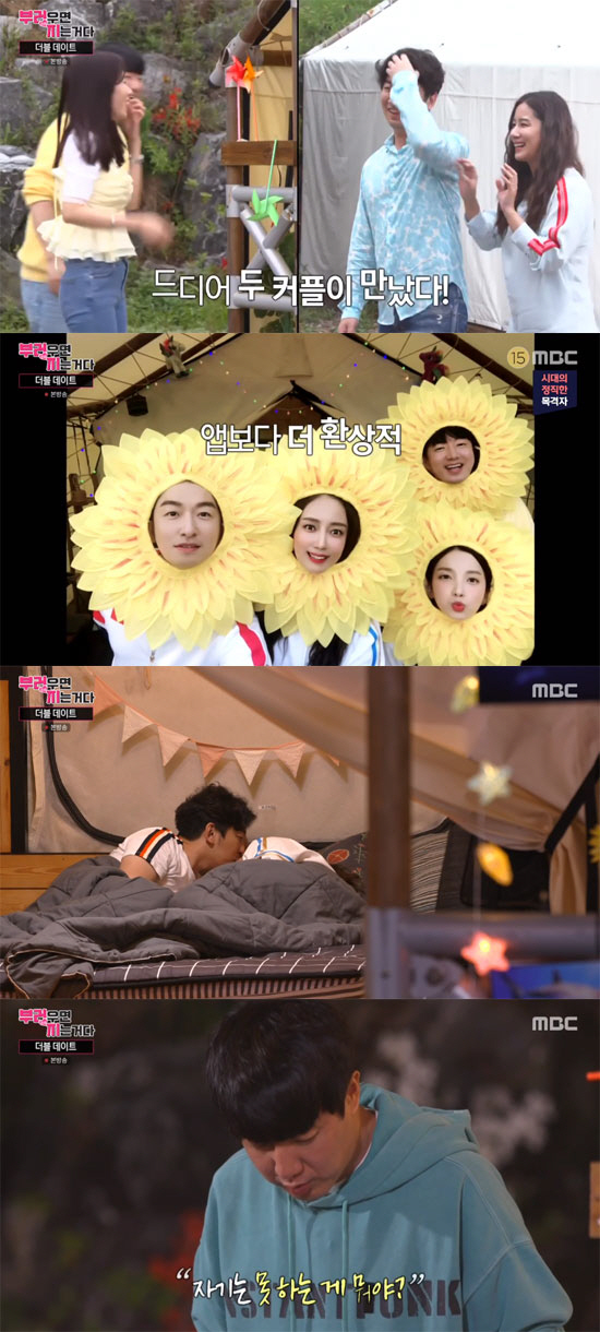 지숙-이두희 커플은 텐트에서 게임기를 설치해 신나게 즐기는가 하면, 최송현-이재한 커플은 침대에 누워 뽀뽀를 하는 전혀 다른 분위기로 눈길을 끌었다.