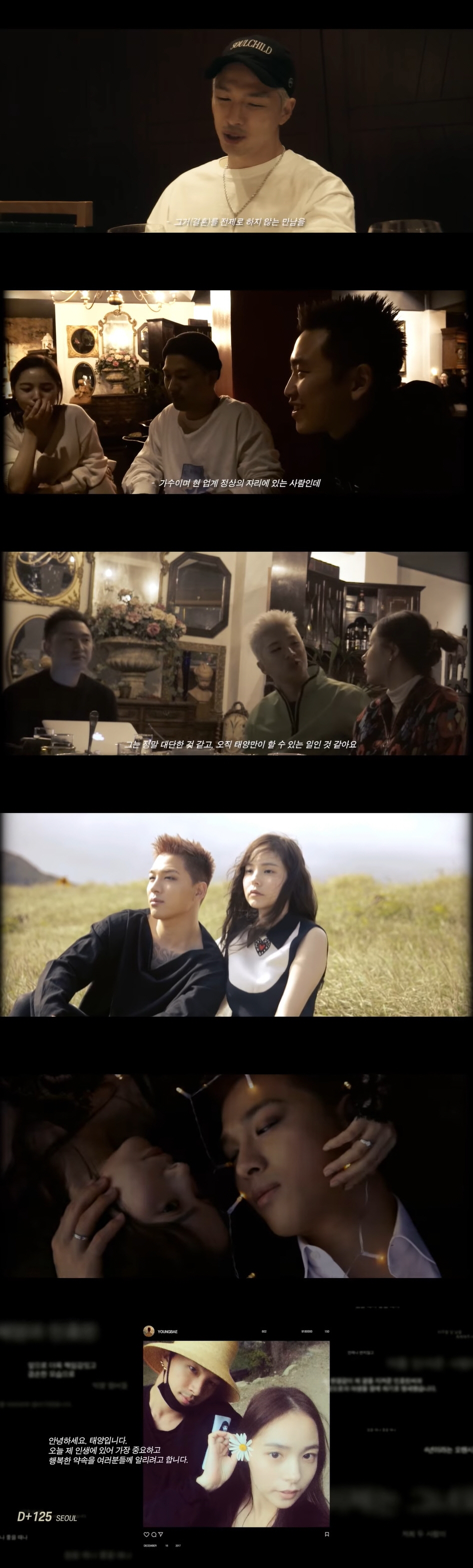 태양은 "예전에는 그렇게 변화라는 게 싫었는데 여자친구를 만나면서 내가 느끼게 된 많은 변화가 생겼고, 그 변화가 날 좀 더 다듬어지게 하고 나은 사람으로 만들어줬다"며 "지금도 사실 계속해서 날 변화시키는 건 유일하게 그녀"라며 민효린에 대한 깊은 애정을 드러냈다. 이어 "나 또한 그녀에게 그런 존재이고 싶고, 그런 면이 내가 '이 사람과 함께 해야겠다', '결혼을 해야겠다'라고 생각하게 된 거 같다"고 전했다.