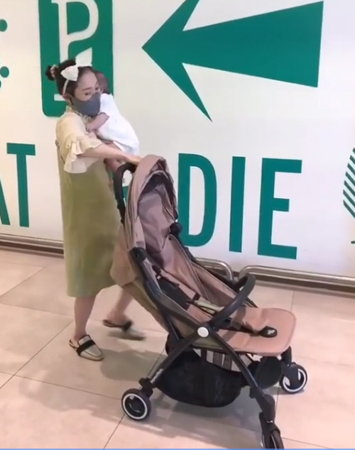 공개된 영상 속에는 한 팔로 아이를 안고 한 손으로는 유모차를 접은 박슬기의 모습이 담겼다.
