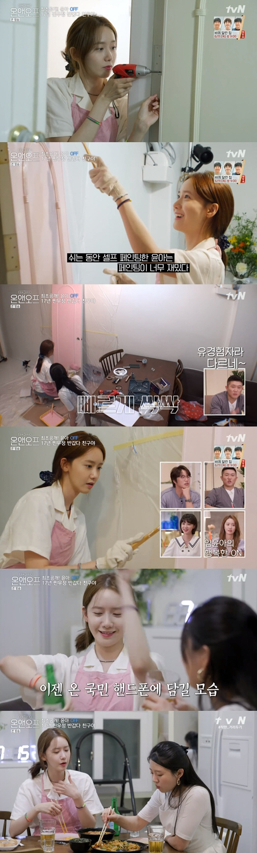 최근 OFF동안 셀프 인테리어에 빠져 방 페인트칠도 손수 했다는 윤아는 공방을 둘러보다 색이 바랜 문에서 눈을 떼지 못하고 결국 두 팔을 걷었다. 윤아는 막힘이 없는 드릴질로 문짝을 떼어냈고, 인터넷으로 갈고 닦은 셀프 페인팅 기술을 선보이며 인테리어 전문가를 방불케하는 활약을 보여줬다. 윤아는 "기분전환도 되고, 시간을 들였을 때 결과물이 눈 앞에 딱 나타나서 좋다"며 셀프 인테리어에 대한 애정을 드러냈다.