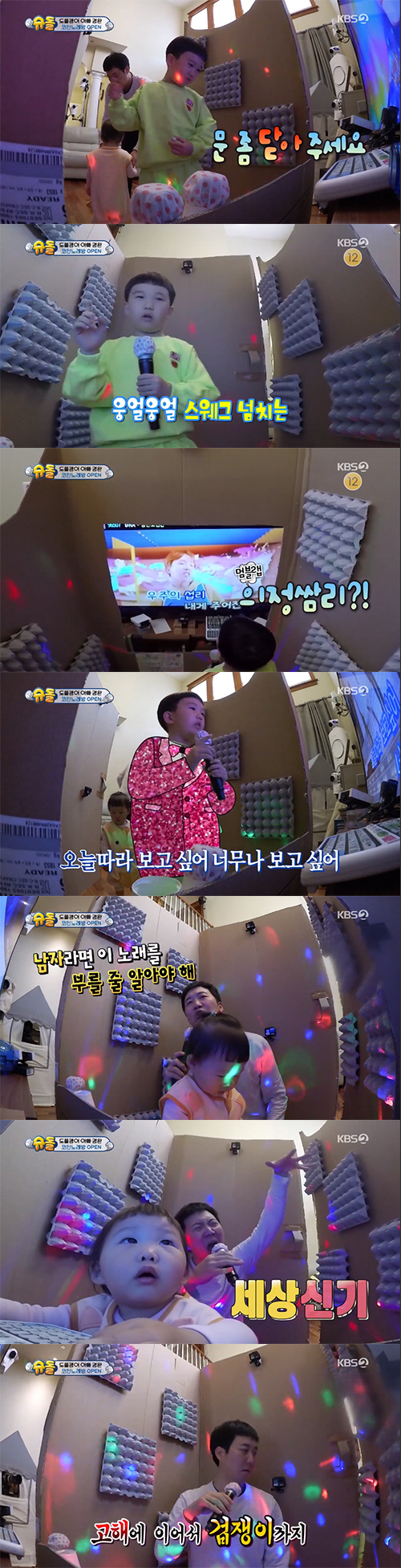 도경완은 커다란 상자 하나를 이용해 실내용 코인 노래방을 만들었다. 아늑한 실내와 달걀판으로 방음처리까지 완벽하게 한 도가네 코인 노래방은 연우와 하영이의 감탄을 불러일으켰다.
