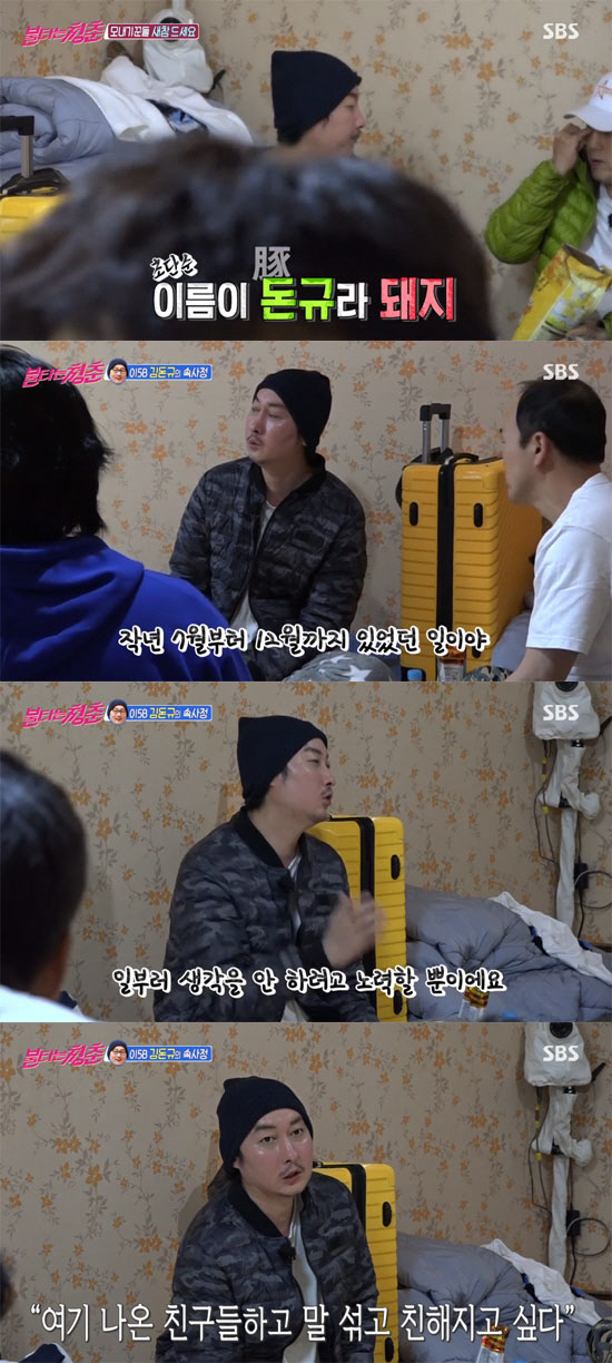 9일 방송된 SBS 예능 프로그램 '불타는 청춘'에서는 여름맞이 농촌 일손 돕기에 나선 청춘들의 모습이 그려졌다. 그 가운데 새 친구 김돈규가 그 동안의 맘고생에 대해 솔직하게 털어놔 눈길을 끌었다.