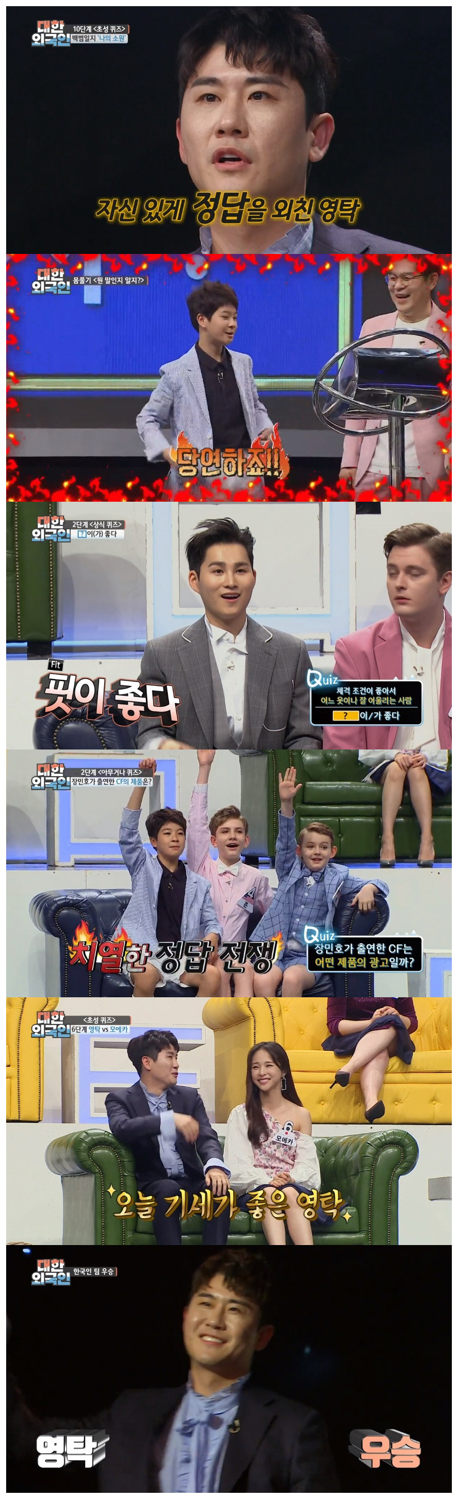 '대한외국인' 최연소 도전자인 14세 정동원은 "존&맥 형제를 이기겠다"고 선언하며 대결에 도전했지만 아쉽게 존과의 대결에서 패배했다. 이어 김희재가 남다른 속도로 정답을 맞히며 한국인팀의 에이스로 급부상했지만 그도 8단계에서 탈락의 고배를 마셨다.