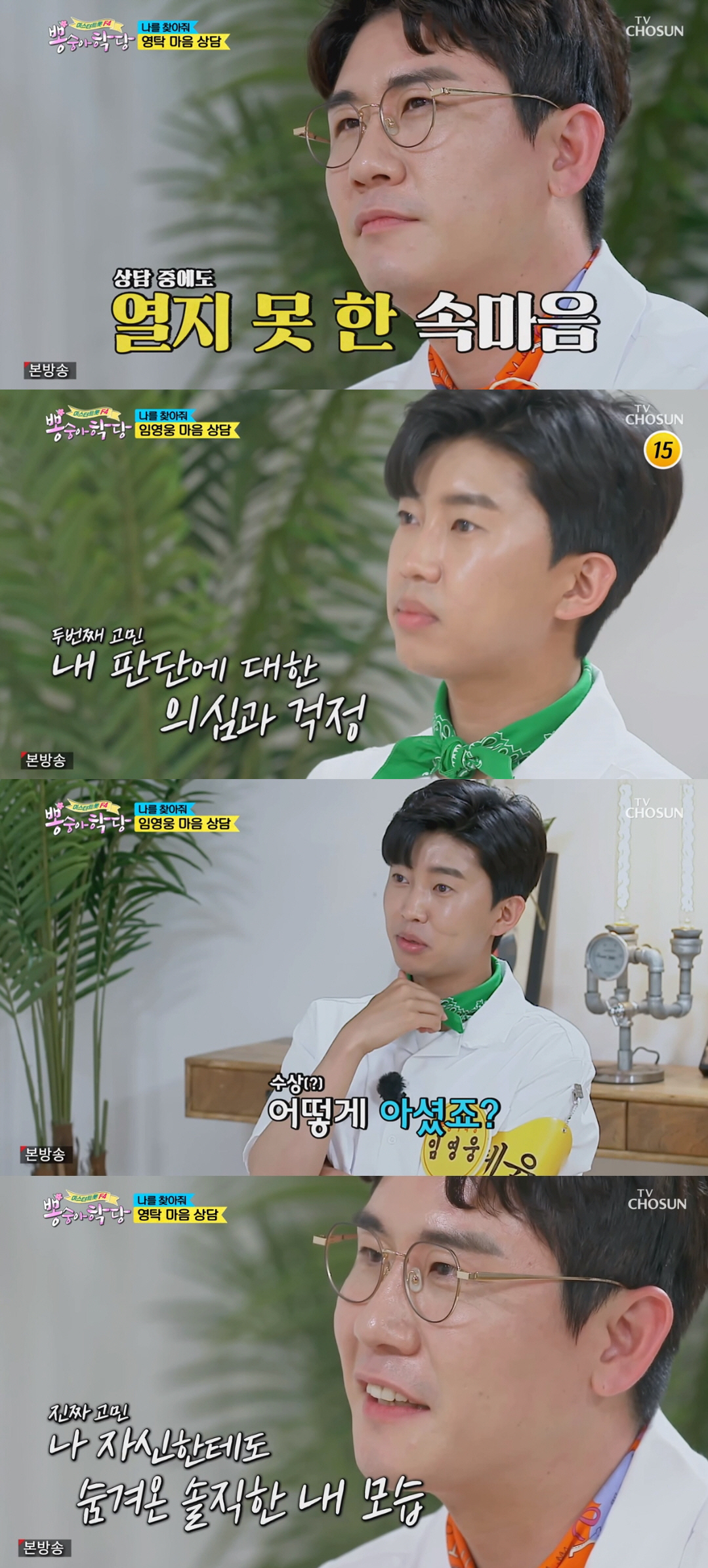 임영웅의 고민에는 솔루션이 2장 나왔다. 솔루션은 '네가 가는 길을 가면 돼. 타인의 생각은 신경쓰지 마라'였다. 임영웅은 "제가 꿈꿔온 지금의 삶이 허공으로 날아가지 않게 붙들겠다"며 조용필의 '허공'을 열창했다.