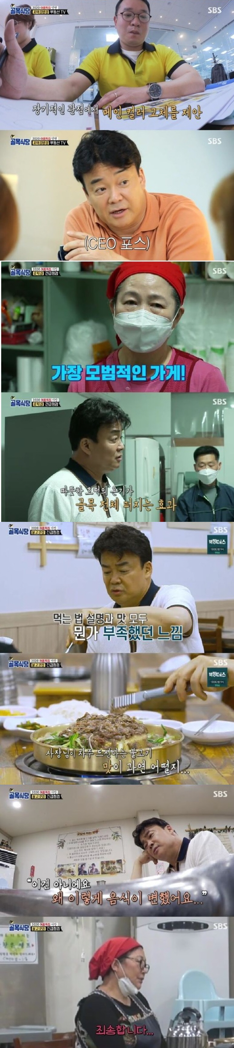한편, '서산 해미읍성 골목'은 불고깃집과 호떡집에 대한 SNS 후기가 극과 극으로 나뉘며 MC들을 착잡하게 했다. 특히, MC들의 기대가 컸던 불고깃집은 '릴레이 혹평'에 백종원이 직접 검증에 나서며 사장님과 만나게 됐다.