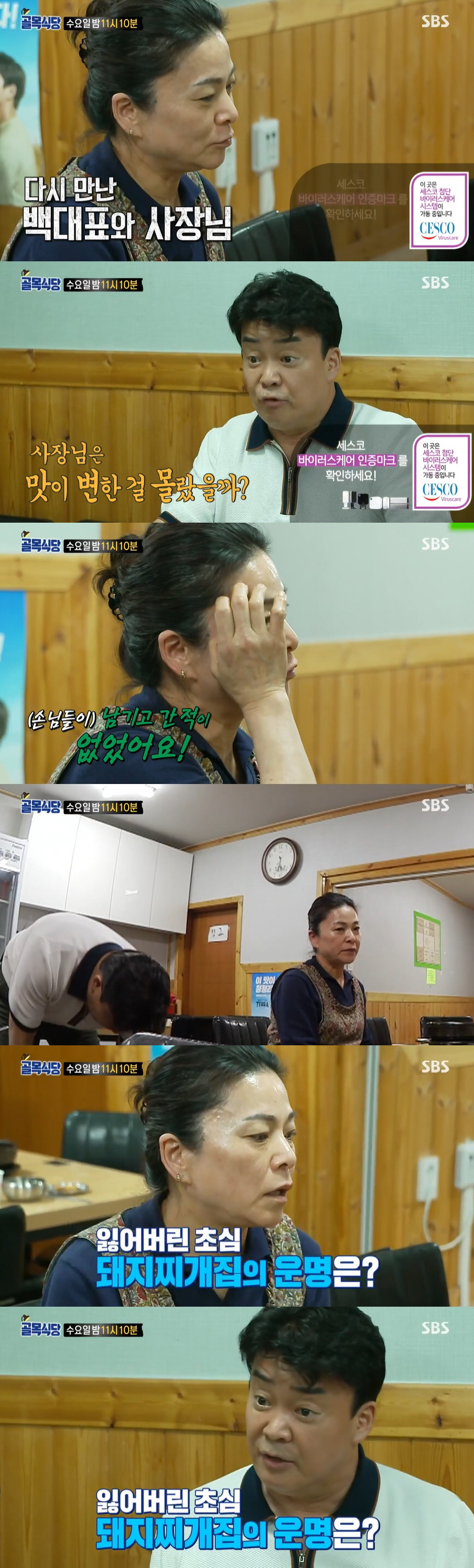 사장님과 마주 앉은 백종원은 맛과 서비스에 대한 부정적 후기에 대해 이야기를 꺼냈다. 그러나 사장님은 "최선을 다한다. 손님들 오면 깍듯이 하지만. 손님들이 우리를 만족 못 하는 거 같다"며 말했다.