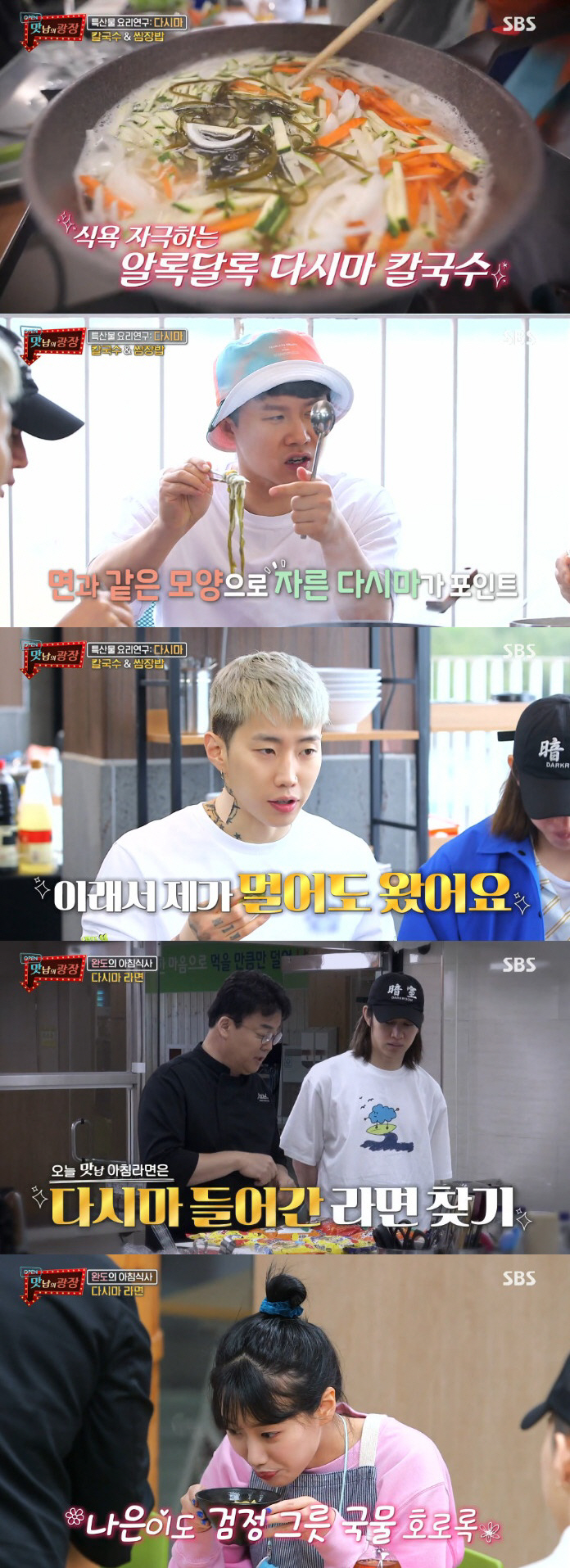 박재범 덕에 면역력을 키운 멤버들은 본격적으로 요리 연구에 돌입했다. 백종원이 준비한 점심 메뉴는 다시마 칼국수와 다시마 쌈장밥. 다시마는 찬물에도 잘 우러났다. 백종원은 멸치가루를 다시마 물에 넣고 국물 냈던 다시마도 면처럼 길게 썰어 넣었다. 다시마는 칼국수의 감칠맛을 더했다.