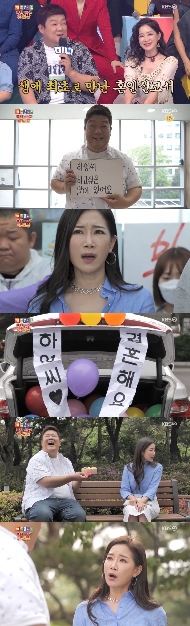 결국 김하영은 "아무리 여자를 모르는 숙맥이라고 해도 해도 해도 너무한 거 아니냐"고 말했다. 이에 유민상은 "미안하다. 난 나름대로 하영 씨한테 멋지게 프러포즈하고 싶어서 영화도 보고 주변 사람들한테도 물어보고 나름대로 한 건데 죄송하다"고 사과했다.