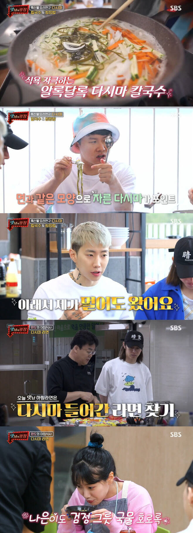이어서 백종원과 멤버들은 다시마를 이용한 요리 연구에 나섰다. 백종원이 준비한 메뉴는 다시마 칼국수와 다시마 쌈장밥. 멸치가루를 다시마 물에 넣고 국물 냈던 다시마도 면처럼 길게 썰어내 다시마 국수를 완성하고 다시마와 채소를 함께 볶아 갖은 양념을 넣어 다시마 쌈장도 완성했다. 맛을 본 멤버들은 "완도까지 와서 먹을 맛"이라며 감동했다. 박재범은 "저는 칼국수 사실 안 좋아한다. 근데 이렇게 먹게 된다"고 말을 보탰다.