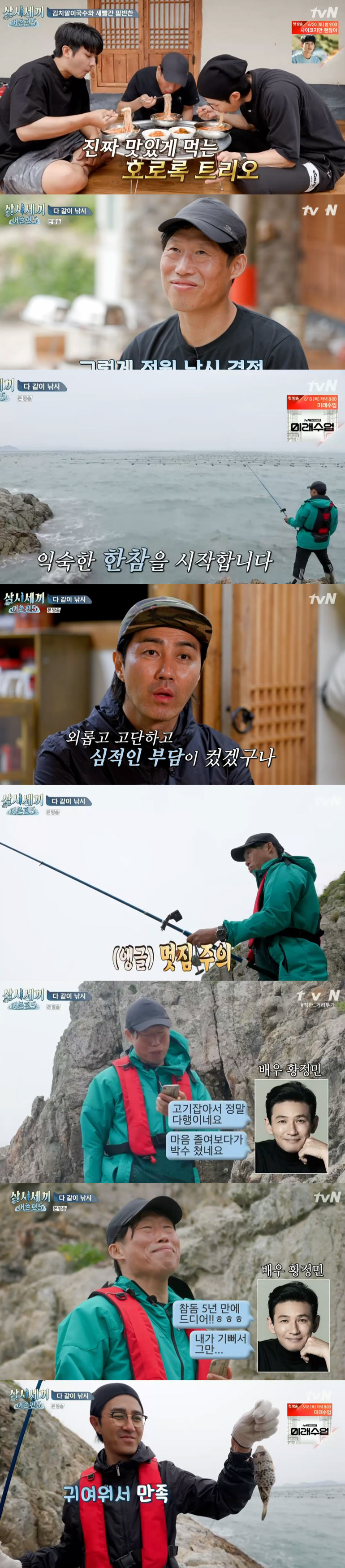 [스포츠조선닷컴 정안지 기자] '삼시세끼5' 차승원과 유해진, 손호준이 갯바위 낚시에 도전했다.