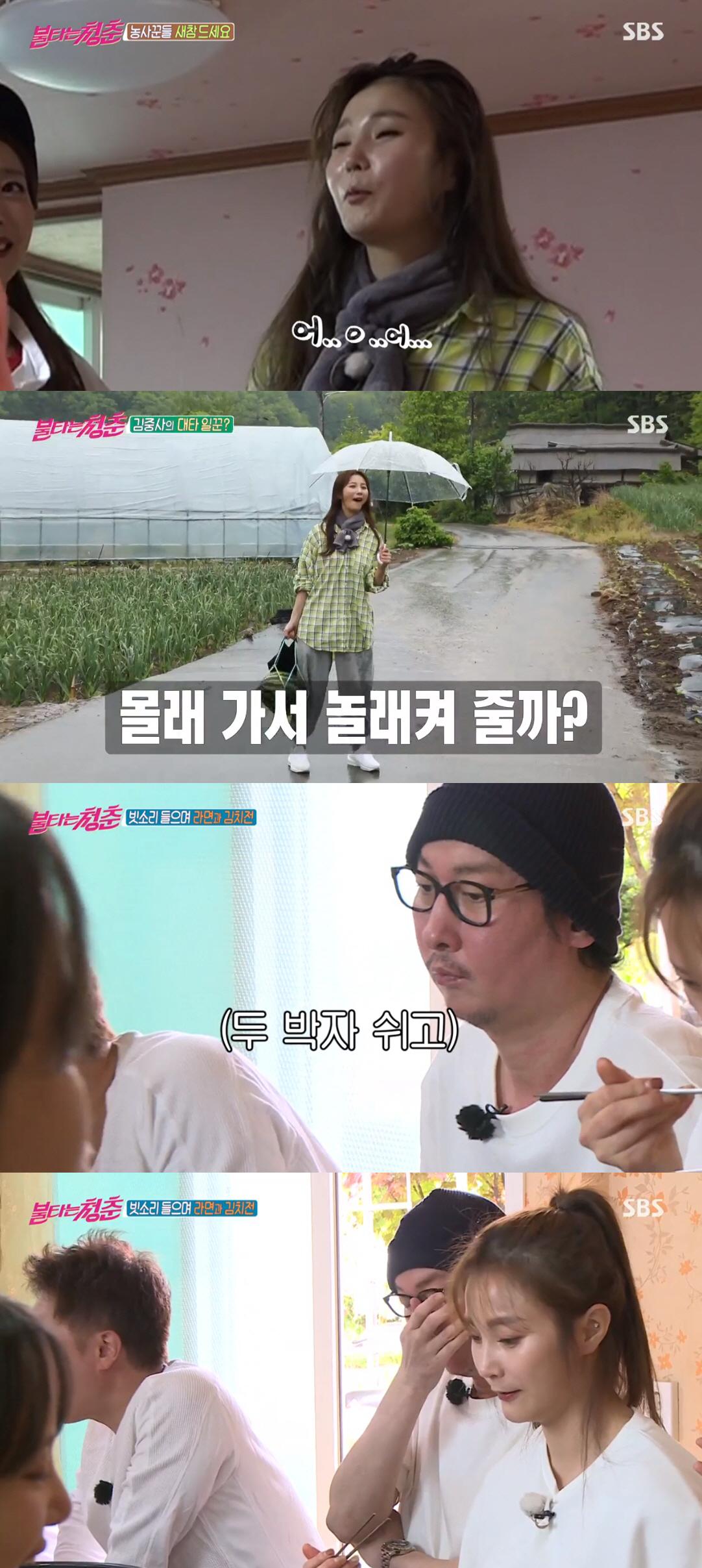 청춘들은 빗 소리를 들으며 라면과 김치전을 먹었다. 주당 박혜경은 막걸리를 찾았다. 안혜경은 입이 짧은 김돈규를 살뜰히 챙겼고, 김돈규는 "좀이따 농담따먹기 하면 된다"는 아재개그를 시전했다.