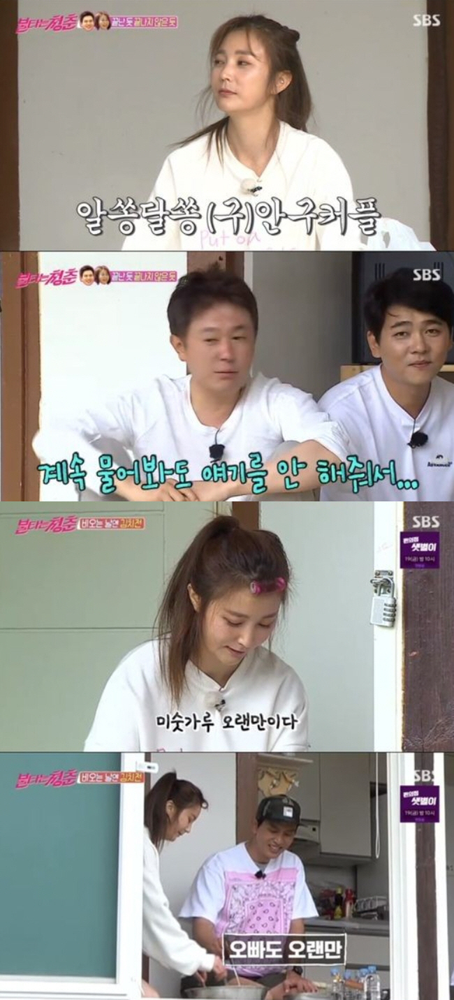 안혜경은 가정 먼저 구본승을 챙기며 알콩달콩 요리했다. 언제 이별했냐는 듯 편해보이는 두 사람. 청춘들은 "저 커플 어떻게 된 거냐. 궁금하다"며 안혜경과 구본승 안구커플이 계속되는 거냐 물었다.