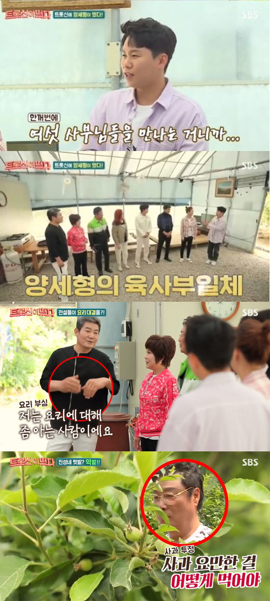 스폐셜 MC 양세형은 트롯신들 앞에서 자신의 유행어 양세바리와 함께 깨방정(?) 인사를 선보여 웃음을 자아냈다. 양세형은 "어제 방송까지 다 봤다"라며 "'집사부일체'라는 프로그램에서 사부님들을 만나는데, 여섯 사부를 만나는 거니까. 어제 잠도 잘 못 잤다"며 긴장된 마음을 드러냈다. 이어 트롯신들은 남자, 여자 팀을 나누어 '돌발 요리 대결'을 예고했다.