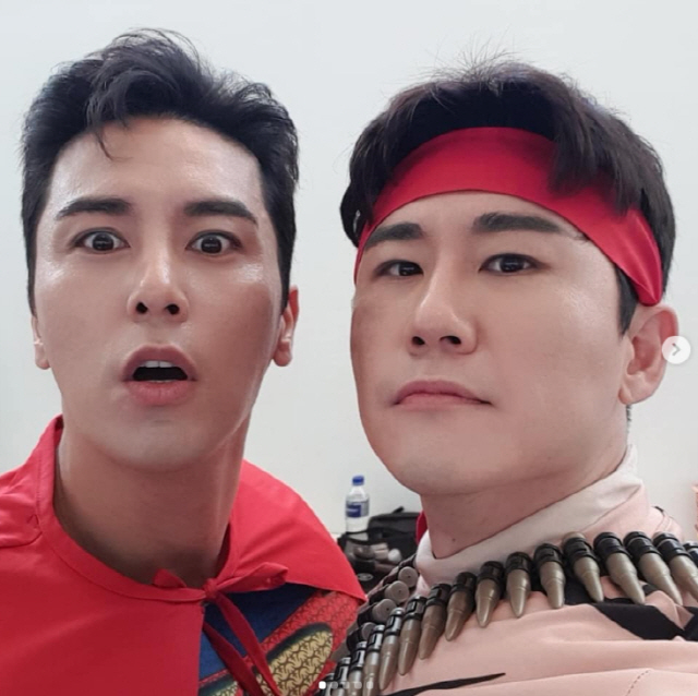 사진에는 TV CHOSUN '사랑의 콜센타' 촬영을 앞두고 여러가지 캐릭터로 분한 멤버들의 모습이 담겻다.