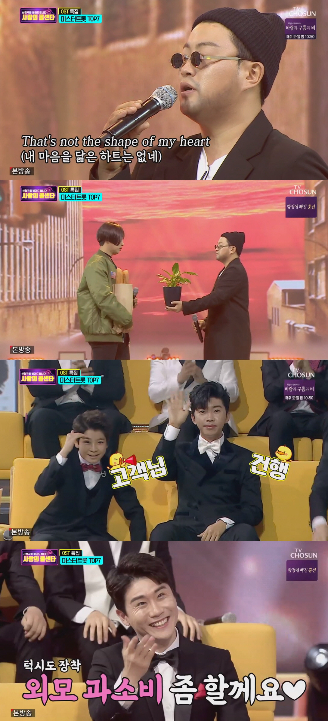 다음은 서울에 사는 숙이 고객. 고객은 영탁을 지목하며 영화 '라디오스타'의 OST '비와 당신'을 골랐다. 영탁은 "불러본 적은 없지만 워낙 유명한 노래라 해볼 수 있을 것 같다"며 금새 감정을 잡았다.