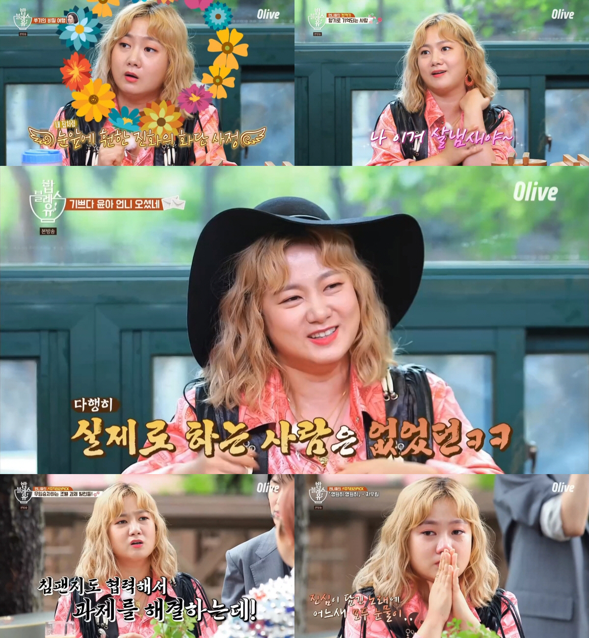 또한 박나래는 "남편과 아들이 너무 안 씻어서 몸에서 개밥 쉰내가 난다"는 사연을 소개하며 "아직도 잊지 못하는 김윤아 언니의 '이거 내 살 냄새야'라는 광고를 남자들한테 많이 써 먹었다"는 19금 토크로 언니들의 환호를 받았다. 나아가 "예전 남자친구가 담배를 피우는 줄 몰랐는데, '몸에서 너무 좋은 냄새가 난다'라고 칭찬했더니 담배를 끊었다"라고 칭찬 솔루션을 제안했다.