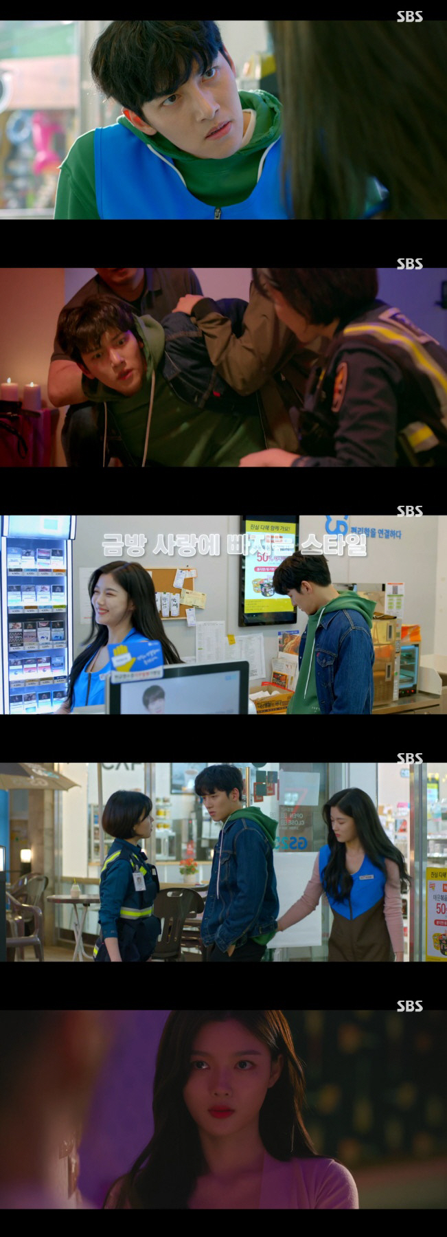 [스포츠조선닷컴 이우주 기자] '편의점 샛별이' 지창욱과 김유정이 입맞춤으로 시작된 첫 만남부터 편의점 점장과 아르바이트생까지, 질긴 인연을 이어갔다.