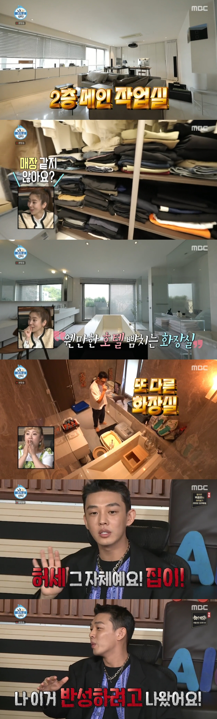 계단을 오르내리며 힘들어하는 자신의 모습을 VCR로 감상하던 유아인은 "집이 허세 그 자체다"라며 "반성하려고 나왔다. 왜 저렇게까지 살았어야 했나"라며 반성해 웃음을 안겼다.